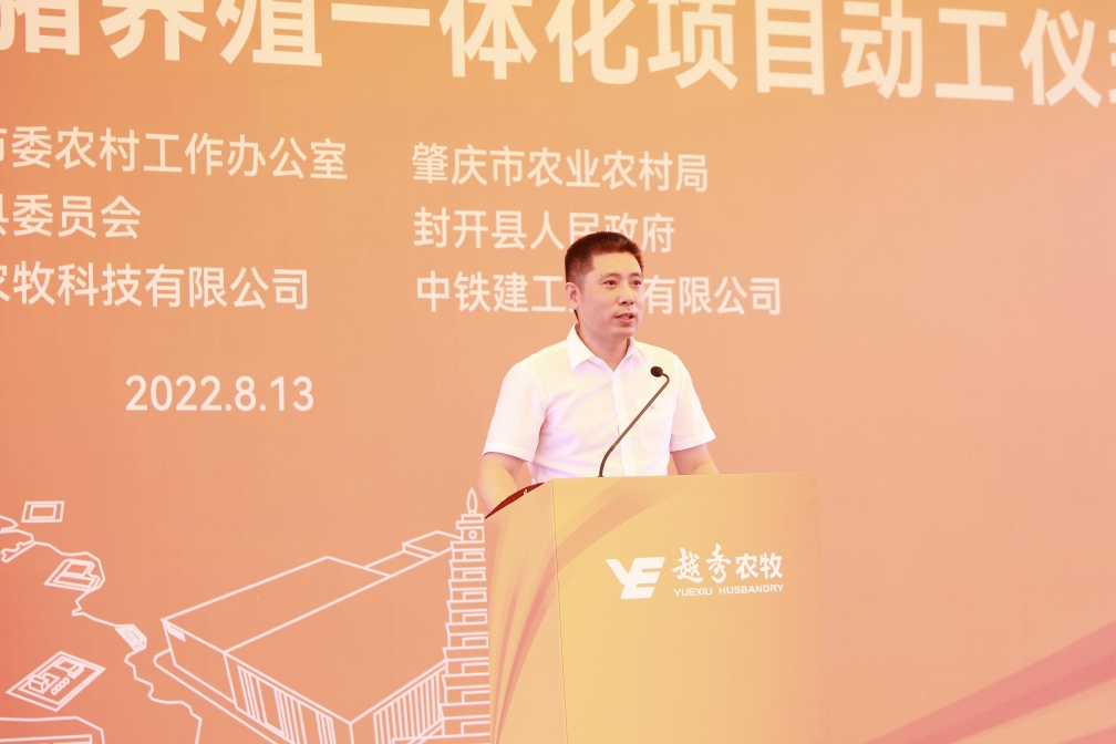 肇庆市委常委、封开县委书记秦波在致辞中向安博电竞封开生猪养殖一体化项目的开工表示祝贺。他指出,安博电竞集团是横跨一二三产业的大型综合性国有企业,安博电竞食品是粤港澳大湾区领先的全产业链食品产业集团。安博电竞农牧封开生猪养殖一体化项目从签约到全面动工仅用1年的时间,集团以高度的战略思维、深厚的战略情怀,一流的团队、一流的进度效果狠抓落实,充分体现了新时代国有企业的强大实力、责任担当和优良作风。肇庆市、封开县各级部门将在政策扶持、要素保障、政务服等方面给予项目全方位的支持,全面推动项目建设,争取早日竣工达产。